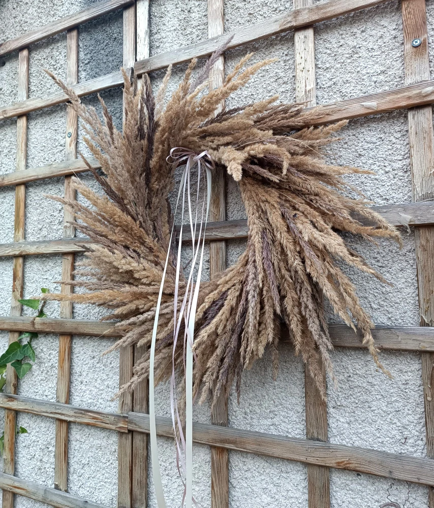 - velký věnec ze tří odstínů travin, motáno na korpusu z psího vína