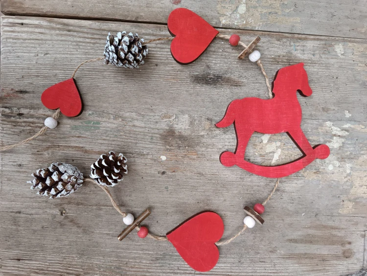 - dlouhý závěs z dřevěných ozdob a šišek