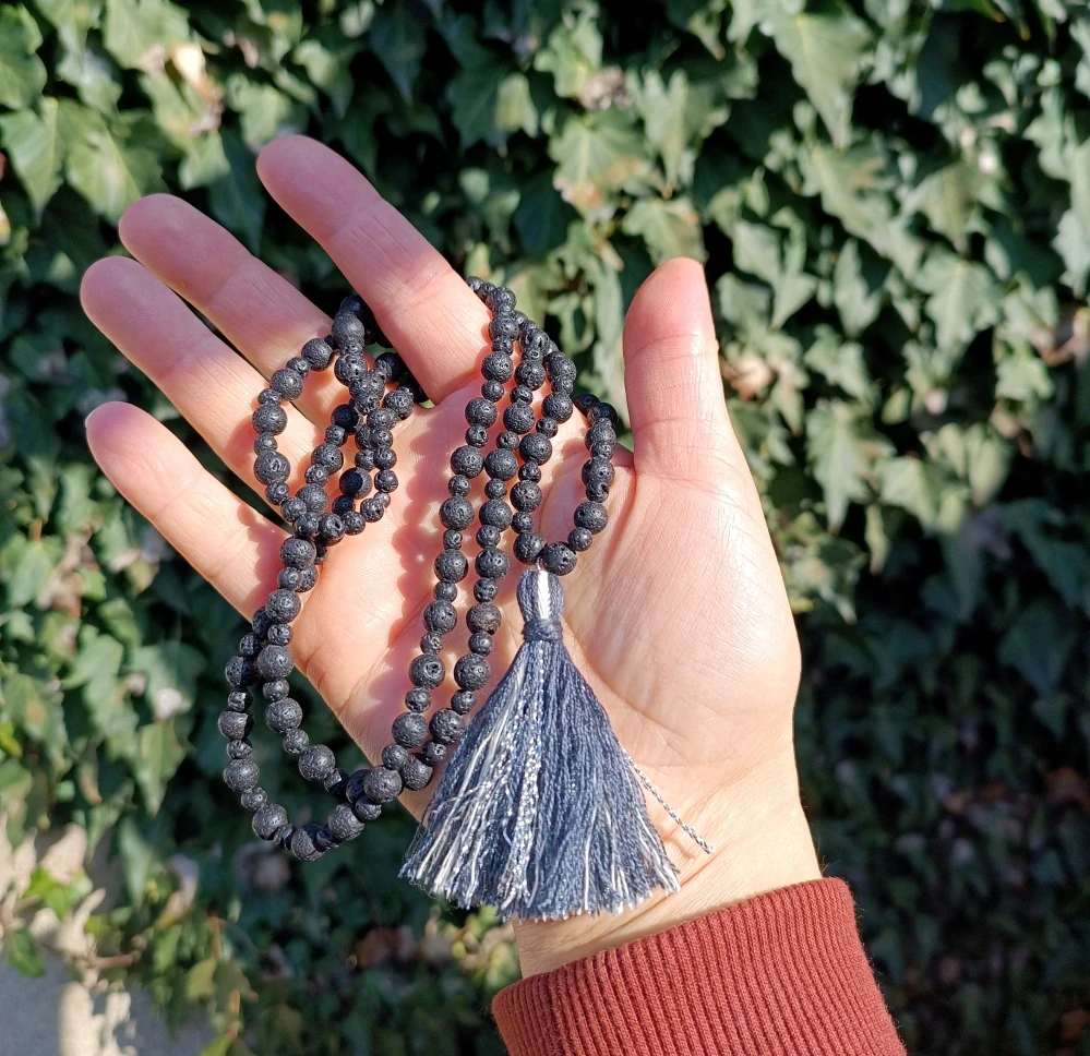- náhrdelník ze dvou velikostí korálků lávy (4 a 6 mm)