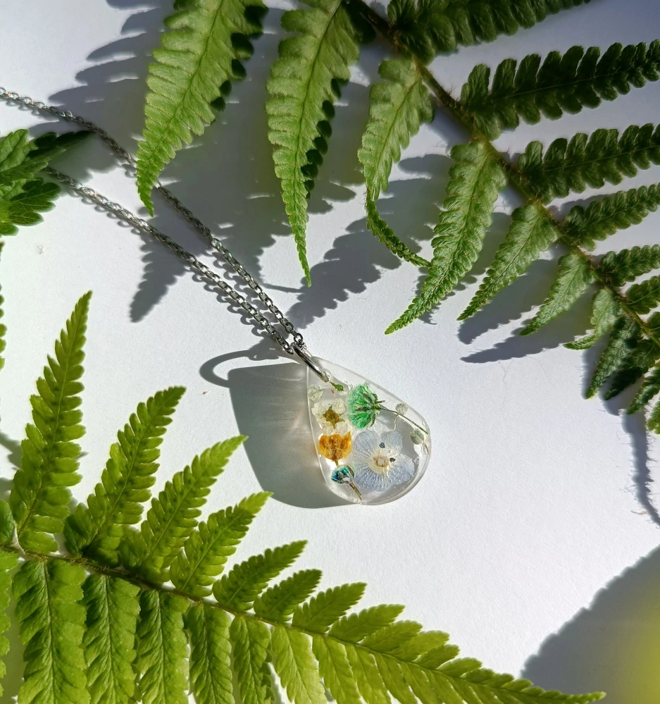 - živé květy zalité v pryskyřici, rozmanité druhy i barvy, v jemných tónech