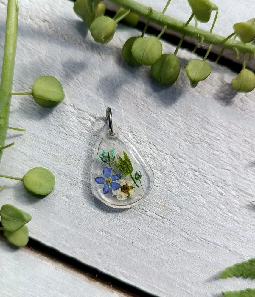 - živé květy zalité v pryskyřici, rozmanité druhy i barvy, v jemných tónech