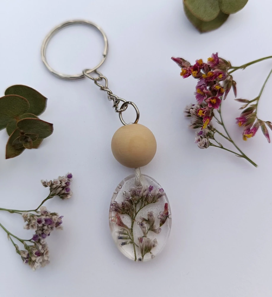 - Přívěsky a klíčenky z živých květů v pryskyřici