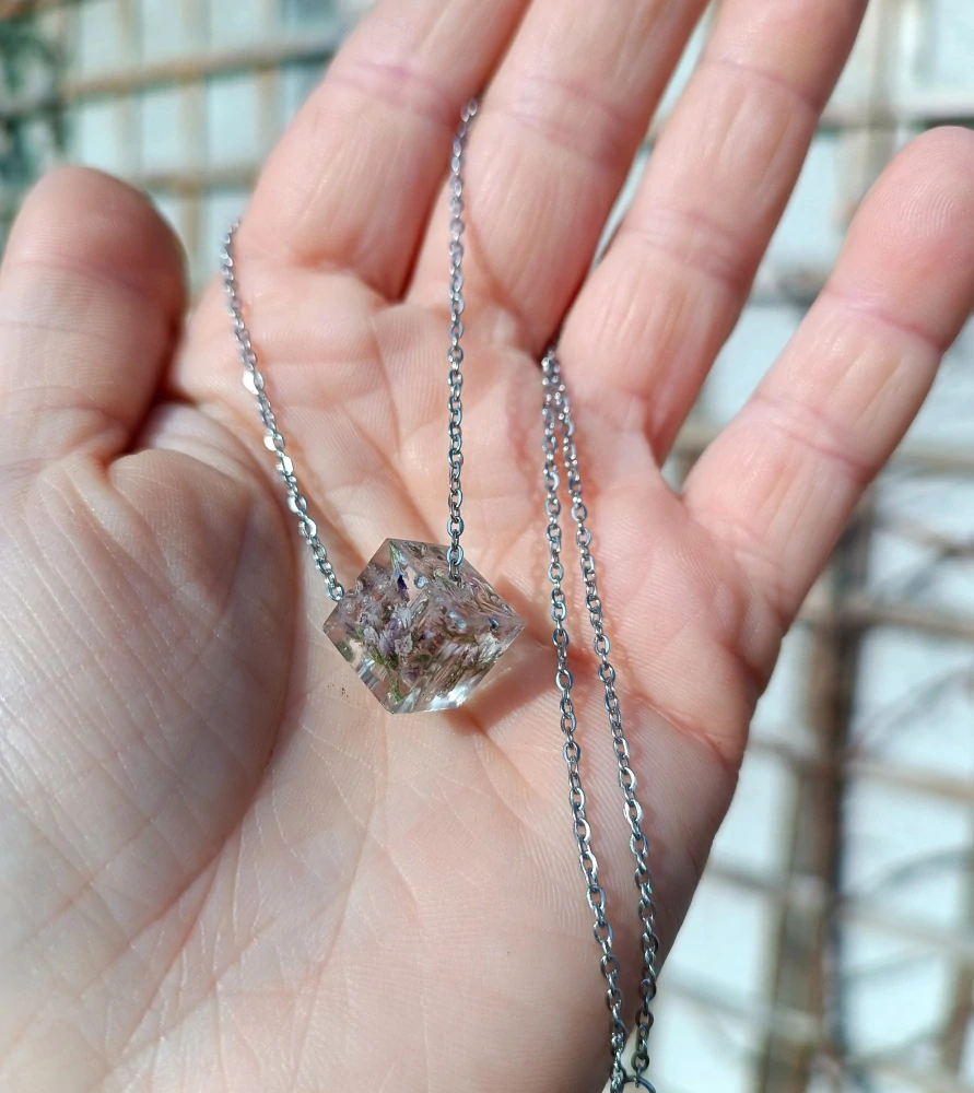 - živé květy v pryskyřici v kostičce (velikost 17 mm)