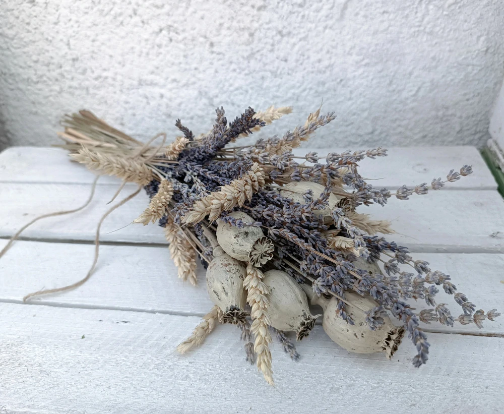 - doplněno voňavou levandulí dvou barev (světle a tmavě fialková), obilnými klasy