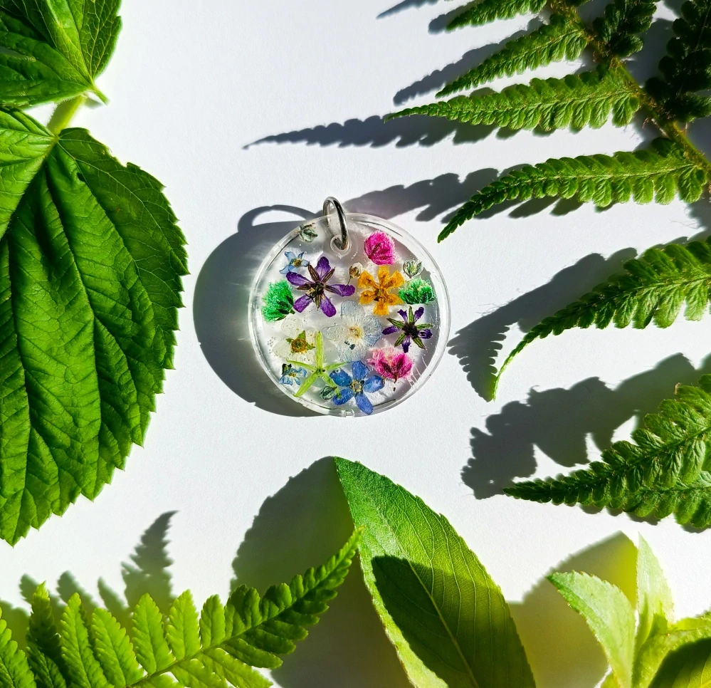 - živé květy zalité v pryskyřici, rozmanité druhy i barvy, jako letní louka plná barev
