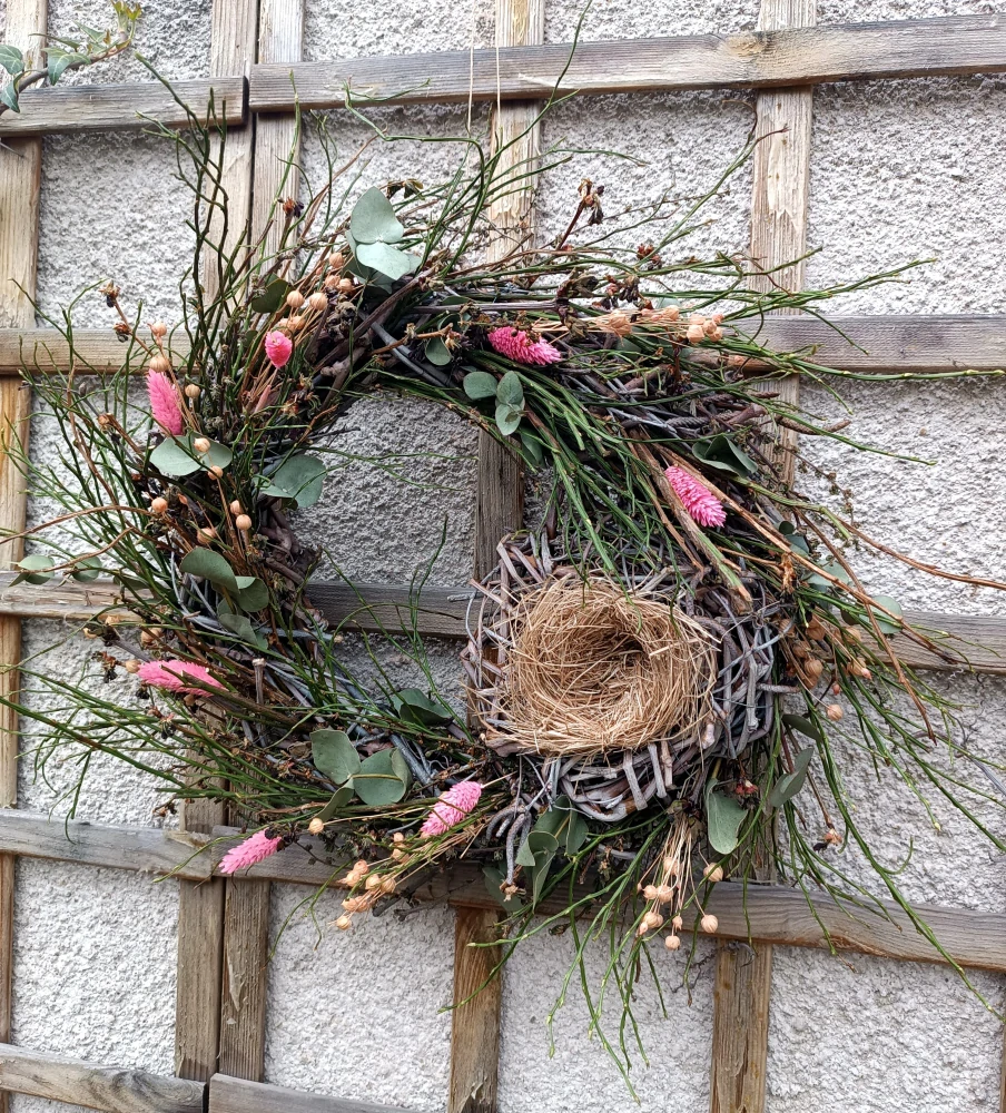 Masivní větvičkový věnec s hnízdem