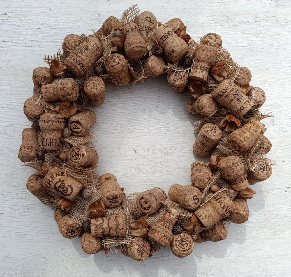 - masivní věnec z korků od šumivých vín - prosecco, perlivá vína, champagne, cremant..