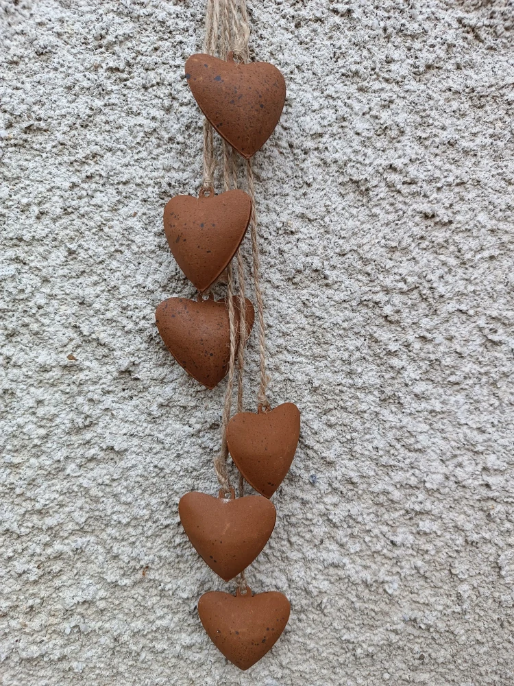 - šest plechových srdíček v barvě imitující rez