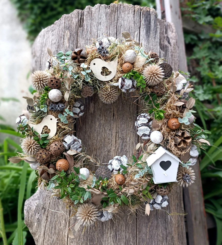 Přírodní věnec jarní / letní trvalivý s ptačí budkou a ptáčkyNení skladem535 Kč/ ks