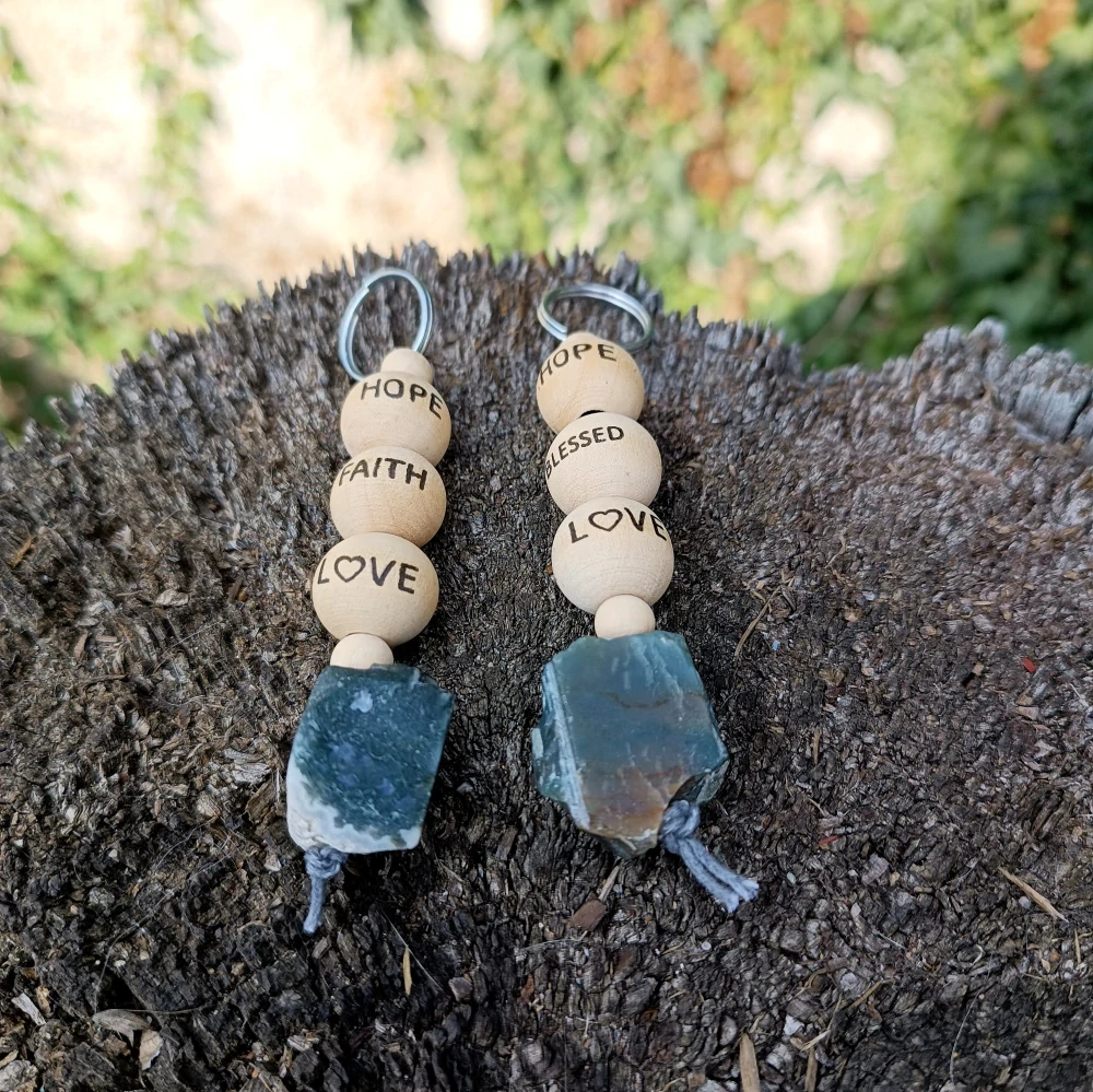 - surový achát, doplněn o tři dřevěné korálky s motivačními nápisy