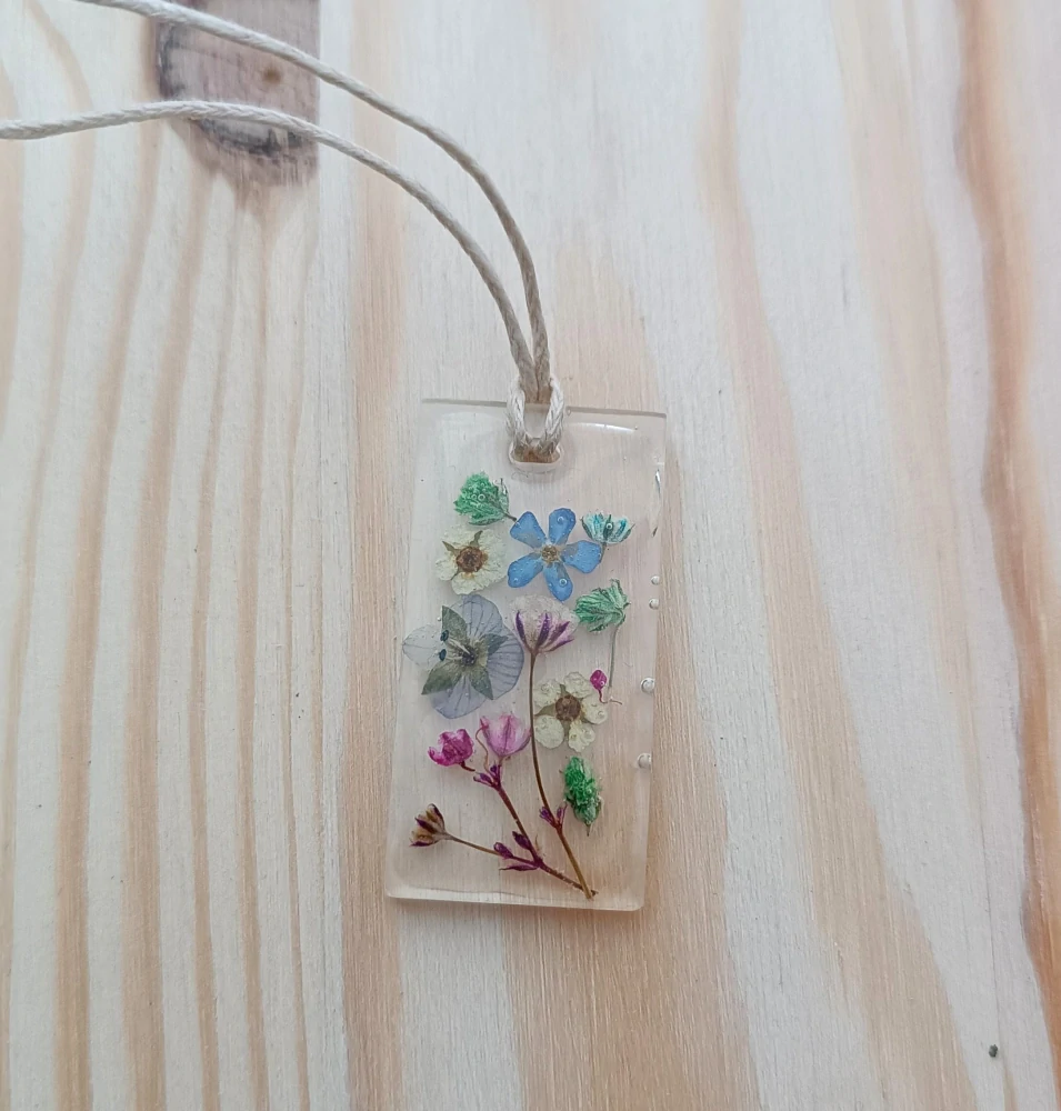- tenká destička s barevnými květy, v pryskyřici, s malinkými bublinkami - žádoucí - tak jako sama příroda, není bez chyby, je divoká a krásná