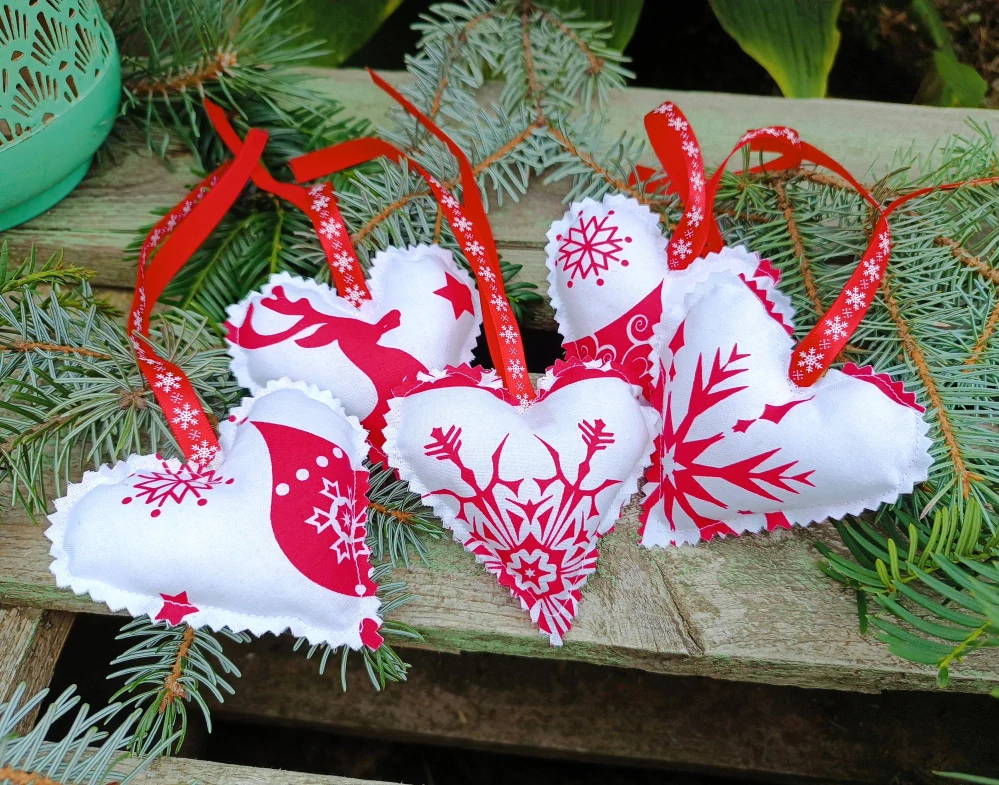 - z každé strany střiženo malinko jinak, každé srdíčko jiné, v bílo-červené barvě, krásně vyniknou na zelených větvičkách, na stromečku
